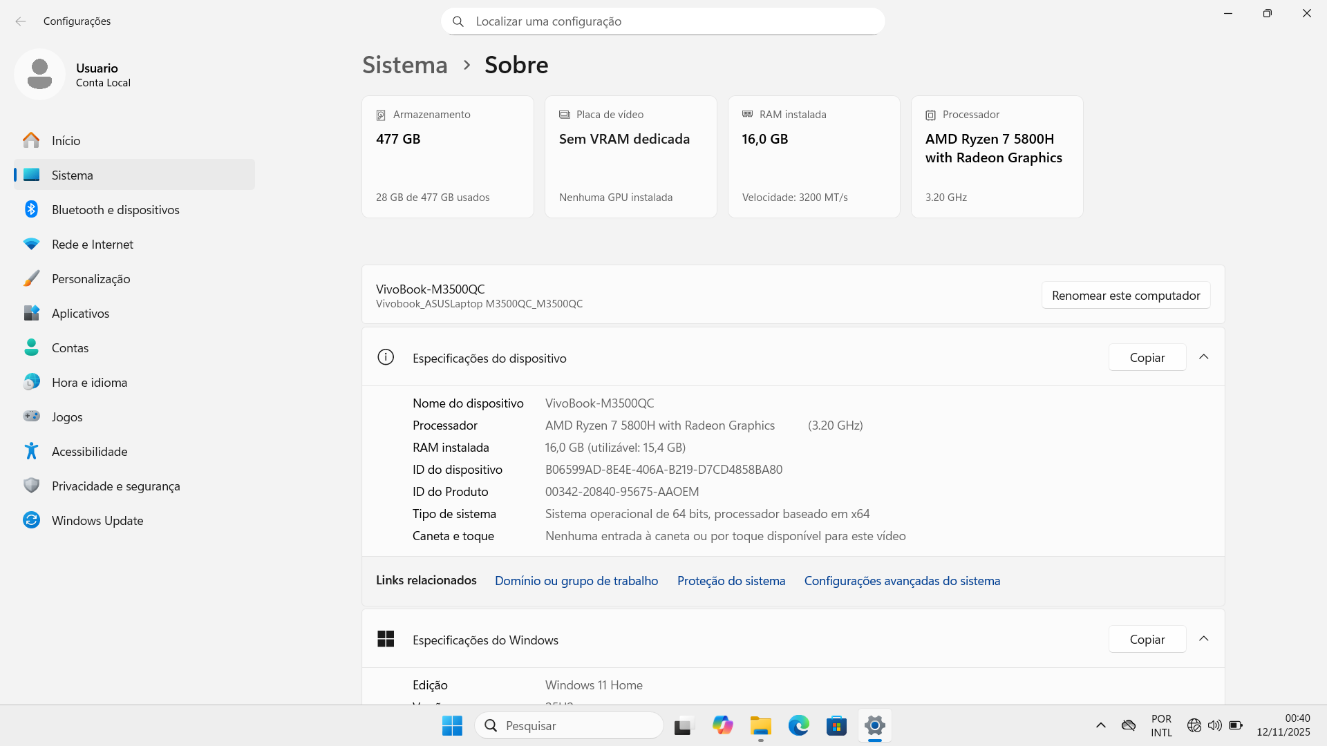 Notebook ASUS VivoBook Pro 15 OLED Ultrafino - RTX 3050 - Ryzen 7 5800H
